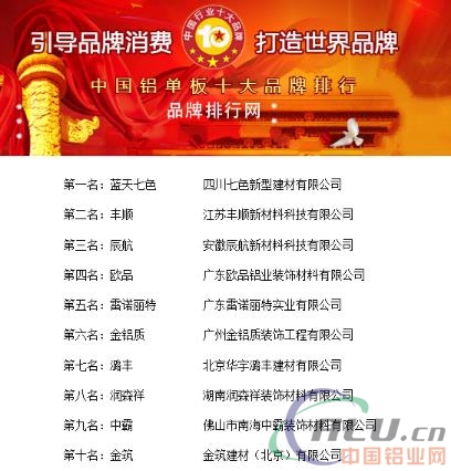 【中國鋁業(yè)網(wǎng)】2018年,在致力于推動中國消費方式品牌化,構(gòu)建良好的消費環(huán)境,對建材項目鋁單板進行了品牌綜合實力排名評選活動,此次評選是通過大數(shù)據(jù)征集了數(shù)百萬網(wǎng)友評選,點評,并且經(jīng)過多輪審核精選出品質(zhì)出眾,人氣旺的十大品牌,活動吸引了國內(nèi)眾多鋁單板品牌和經(jīng)銷商參與,同時也被國內(nèi)多家知名媒體高度關(guān)注,金鋁質(zhì)鋁單板榮登2018年度中國鋁單板十大品牌。