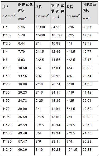 5.GB∕T 13033.1-2007/ IEC60702-1-2002 《額定電壓750V及以下礦物絕緣電纜及終端 第1部分:》的要求可以計算出礦物絕緣電纜銅護套的截面積如表2: