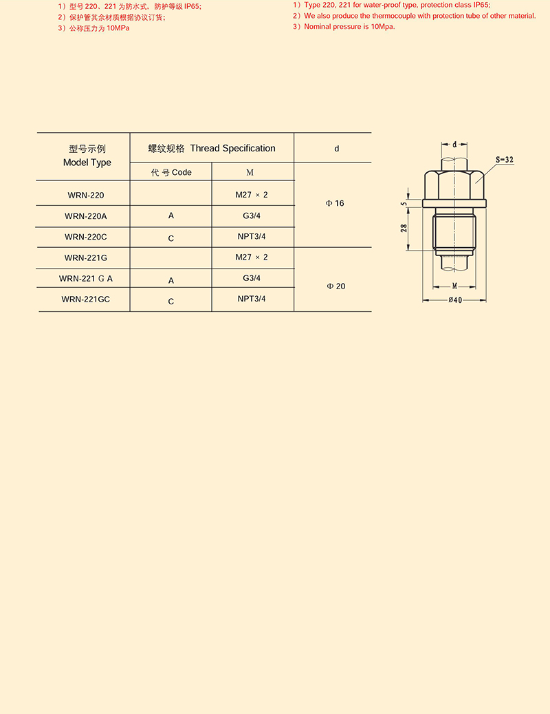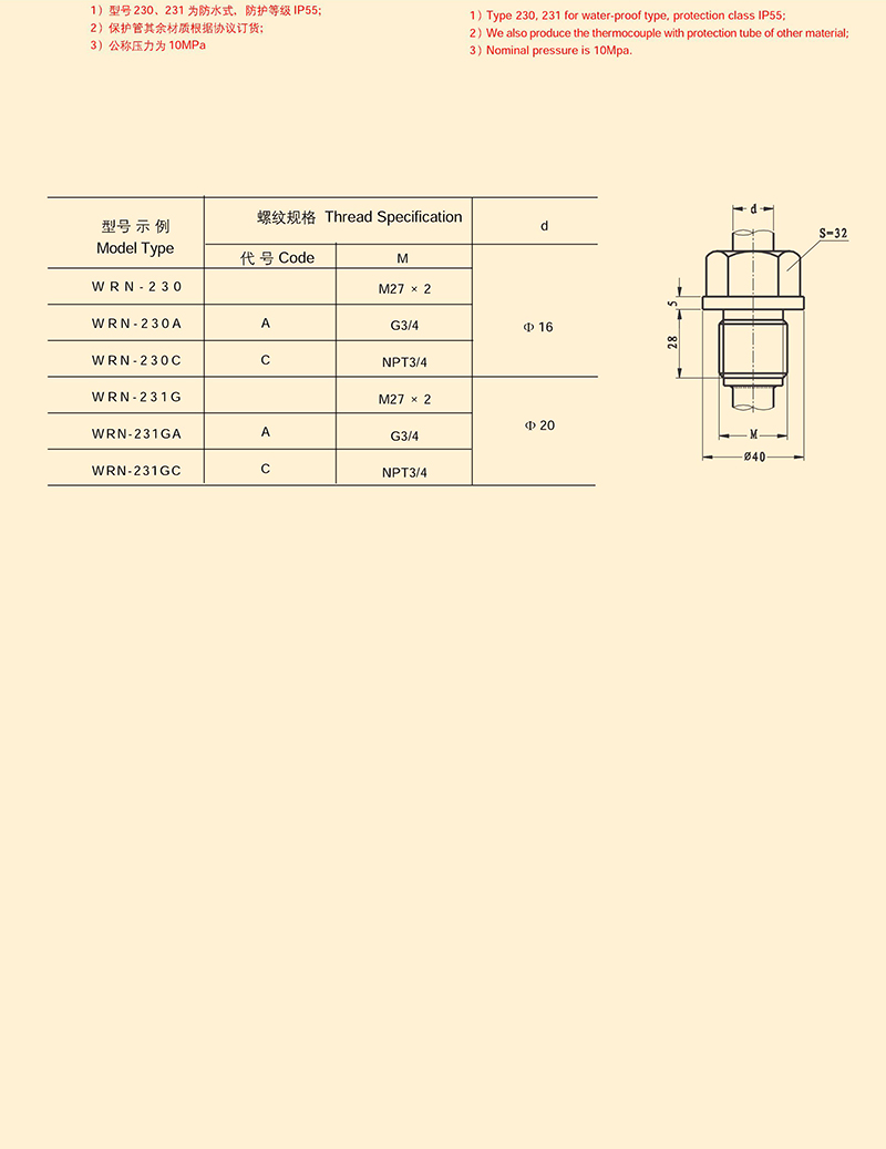固定螺紋式熱電偶