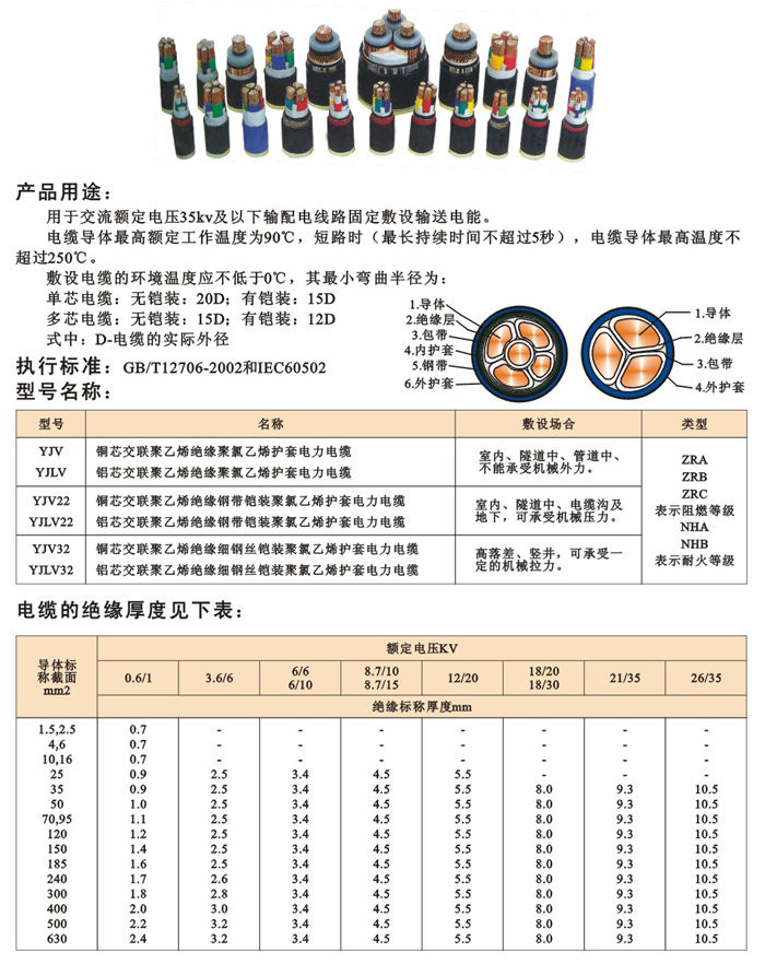 - 產(chǎn)品名稱:額定電壓35KV及以下交聯(lián)聚乙烯絕緣電力電纜