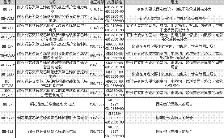 • 產(chǎn)品名稱:NH-BV?NH-BYJ?NH-YJV電力電纜